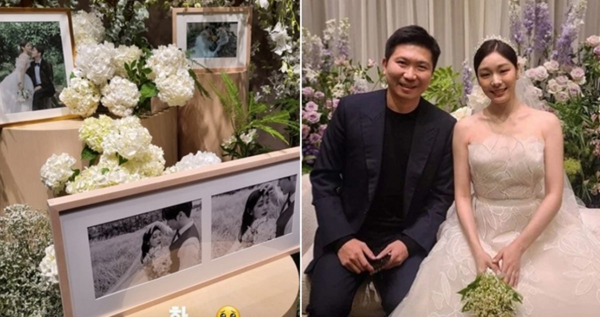 김자인이 공개한 사진 속에는 화려한 꽃으로 장식된 포토 테이블에 김연아와 고우림의 웨딩 화보가 장식돼 있어 누리꾼들의 이목을 끌었다.