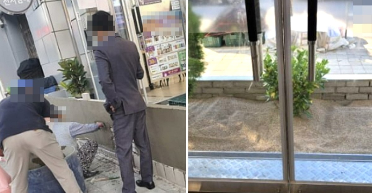 편의점 출근한 아르바이트생이 발견한 입구 앞의 '화단'
