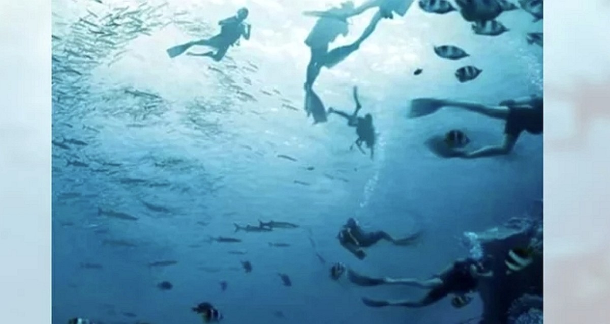 바다를 여유롭게 헤엄치는 다이버들과 물고기를 먼저 발견했다면 당신은 매우 냉정한 사람이다.