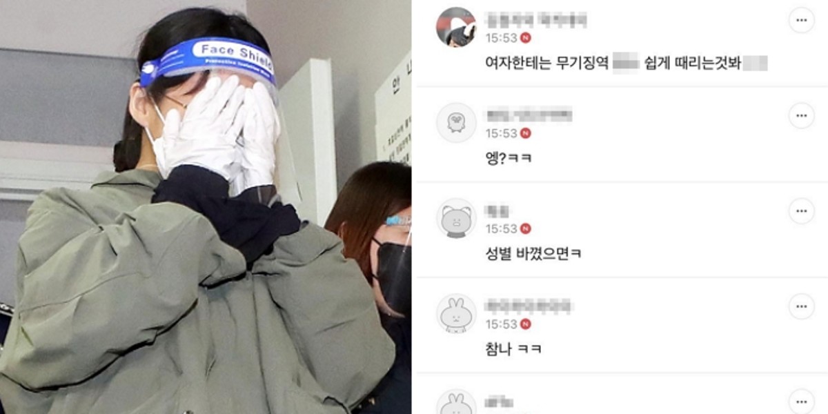 이씨의 무기징역이 선고된 이후 여초 회원들은 "에휴", "지X", "?????" 등의 댓글을 달며 불만을 나타냈다.