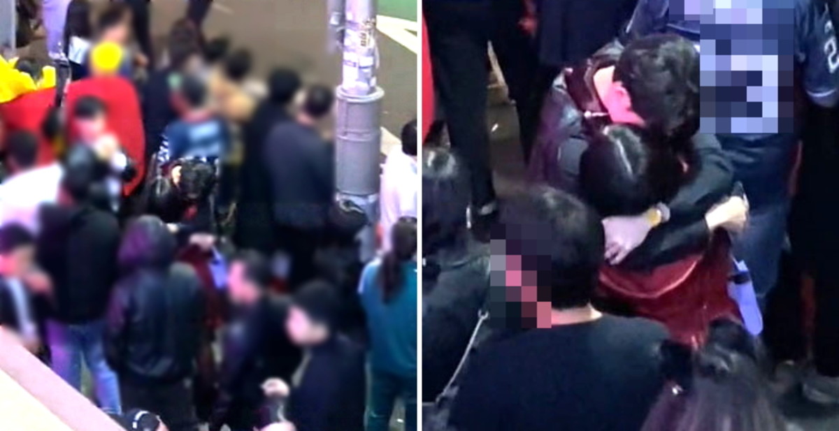 기적적으로 지켜낸 여자친구를 껴안고 두려움, 안도의 눈물을 흘렸을 남성. 그의 행동에서 그날의 충격이 간접적으로 느껴져 안타까움을 안긴다.