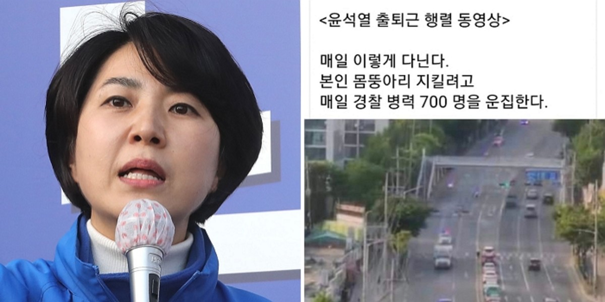 해당 글에는 경호 차량들이 줄지어 도로를 달리는 영상과 함께 "윤석열 출퇴근 행렬 동영상. 매일 이렇게 다닌다. 본인 몸뚱아리 지키려고 매일 경찰 병력 700명을 운집한다"라고 적혀있었다.