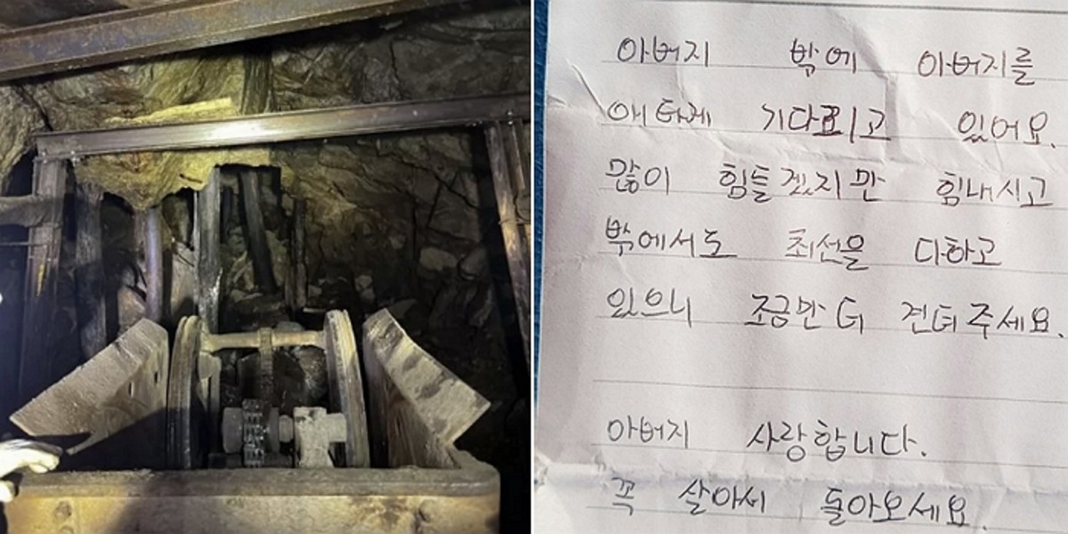 사고 열흘째인 4일에도 구조작업이 한창인 가운데 매몰사고를 당한 박모(62) 조장의 아들 박씨가 갱도에 고립된 아버지가 살아 계실 것이라는 믿음 속에서 작성한 손편지가 가슴을 먹먹하게 한다.