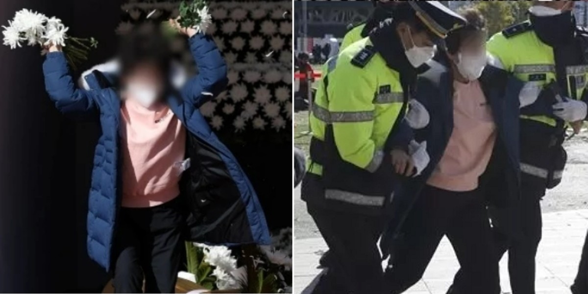 보도에 따르면 한 중년 여성은 분향소 한쪽에 놓인 근조화환을 향해 다가간 뒤 무자비하게 부수기 시작했다.