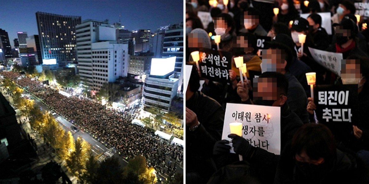 희생자 추모하면서 윤석열 대통령 퇴진 외친 참가자들