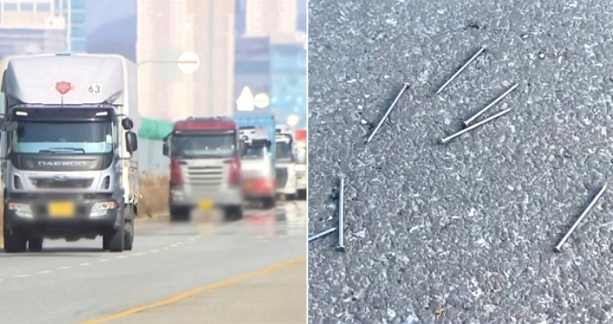 경찰은 신고를 받고 출동해 못이 있는 차로에 교통 통제를 한 뒤 인력 4명을 투입해 못을 수거했다.