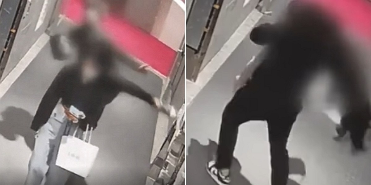 남성은 쓰러진 여성의 의식을 잃을 때까지 폭행을 가했다. 이후 기절한 여성을 어깨에 메고 CCTV가 없는 복도로 데려갔다.
