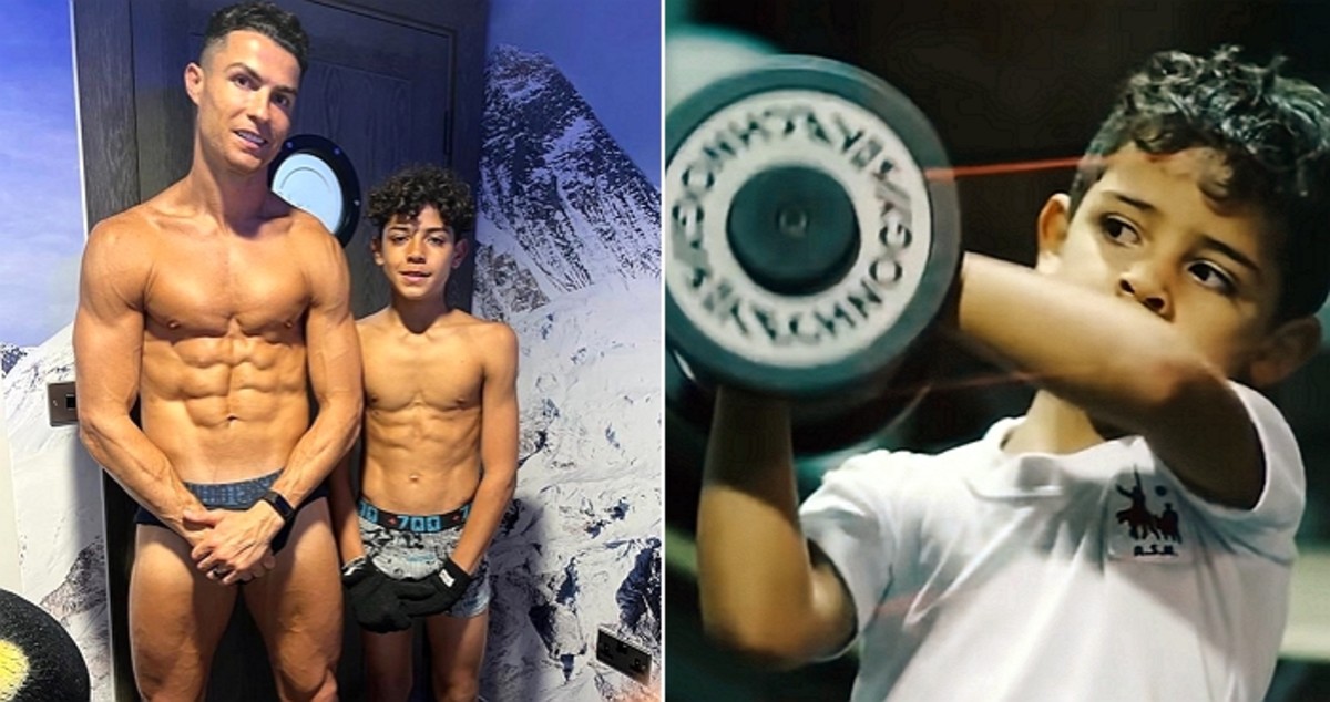엄청난 훈련량으로 호날두 주니어는 아빠 못지않은 탄탄한 식스팩 복근을 자랑한다.