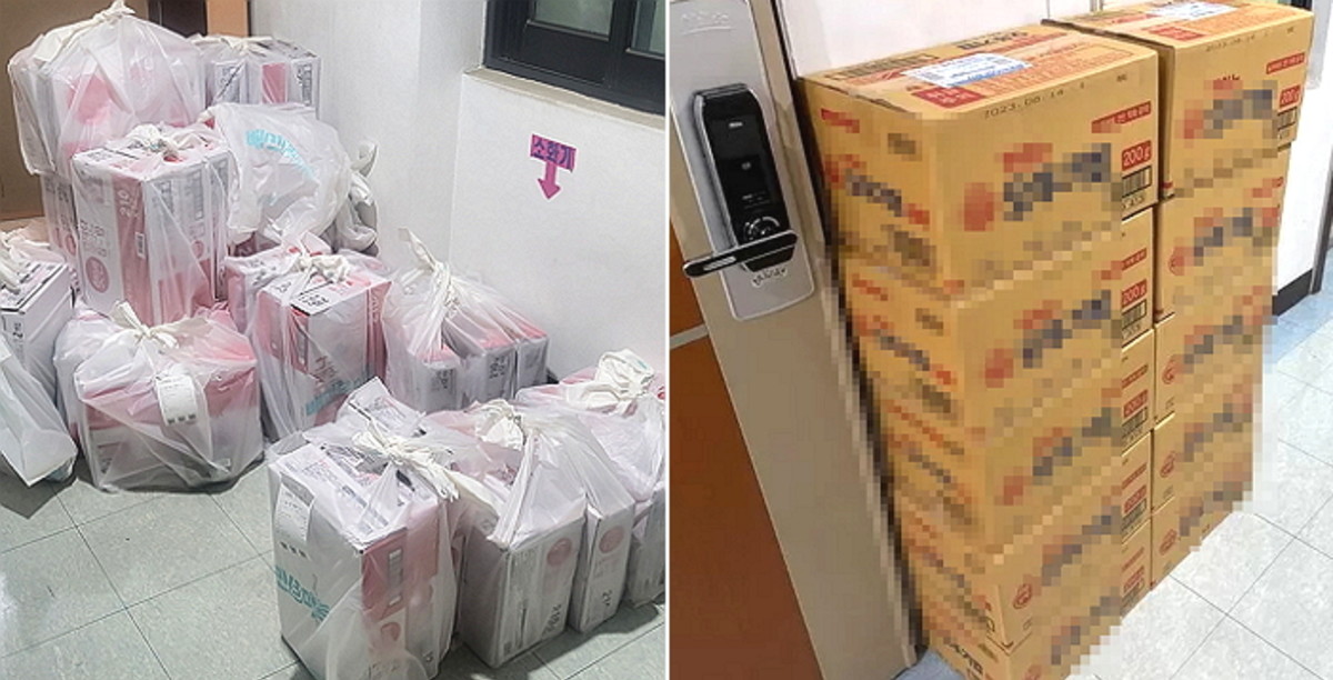 이번에는 너무 많은 양의 즉석밥과 커피가 도착해 문이 열리지 않을 수준이었다고 한다.