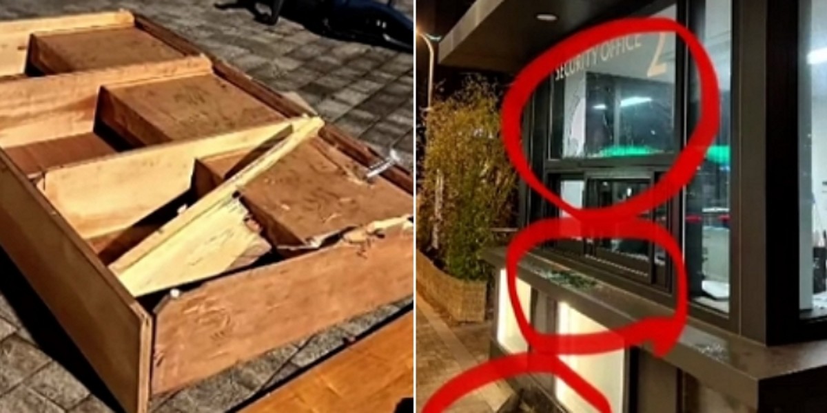 가구뿐만 아니라 경비실도 피해를 봤다. 경비실 유리창은 산산조각나 주변에는 유리 파편들이 남아있다. 사고가 난 현장을 보면 난동이 꽤 오랜 시간 일어났다는 것을 볼 수 있다.