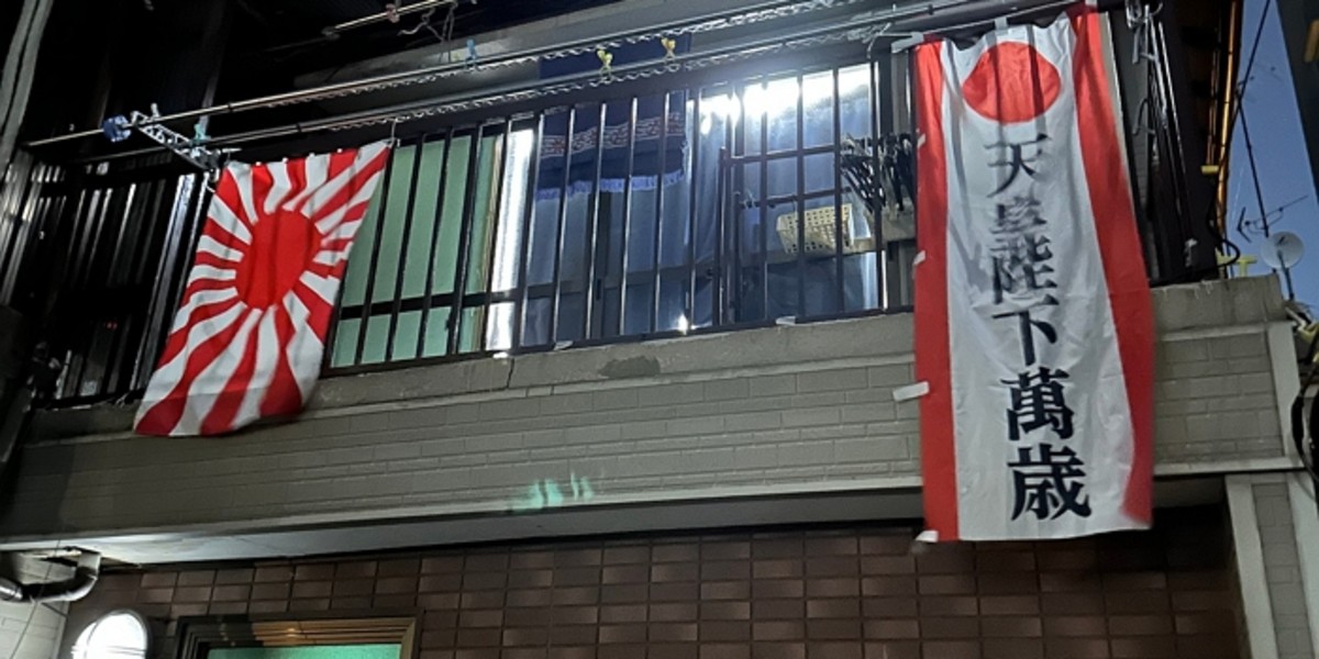욱일기 옆에는 '천황폐하만세'가 적힌 기가 걸려 있어..."일정 끝나고 돌아오니 갑자기 걸려있더라"