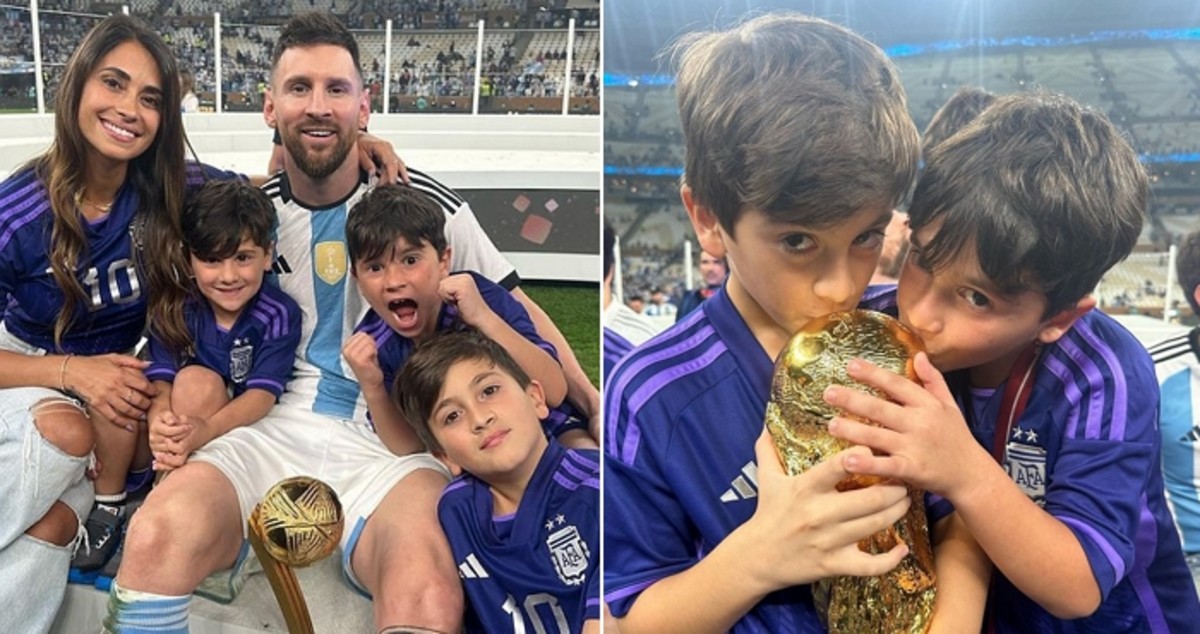 월드컵 우승 현장에는 메시의 세 아들도 함께했다. 이들 또한 월드컵 트로피에 입을 맞췄다.