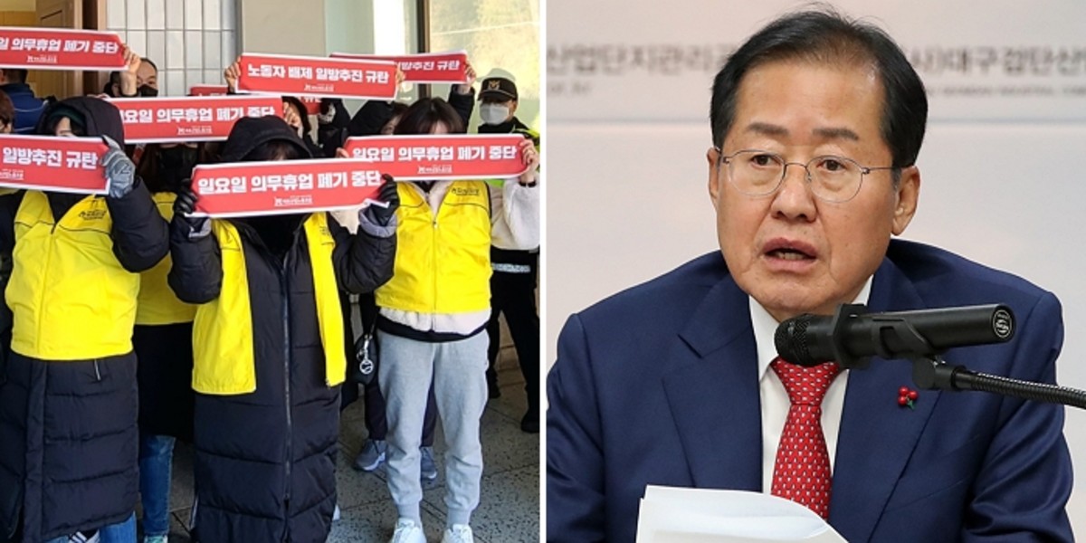 홍 시장은 "뜬금없이 민노총 소속 대형마트 일부 직원들이 시청사에 난입해 시 강당을 점거하고 공공기물을 파손했다. 이를 저지하는 시 공무원들에게 폭언하고 협박을 하는 일이 발생했다"라며 "자기들 본사에 항의할 일을 뜬금없이 시청사에 난입해 공공기물을 파손하고 공무원을 협박하고 시청사를 강제 점거하는 것은 아주 중대한 범죄"라고 비판했다.