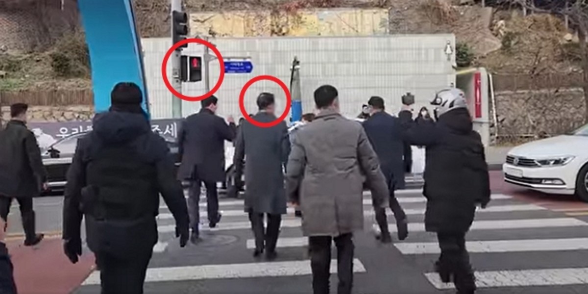그 과정에서 빨간불이 켜진 횡단보도를 건너는 모습이 공개돼 논란이 일고 있다.