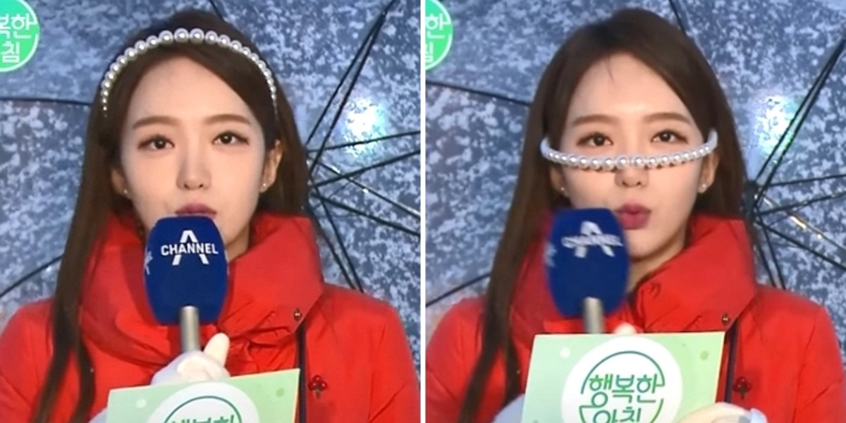 흘러내린 머리띠는 절묘하게 박소연 기상 캐스터의 눈을 가렸다.