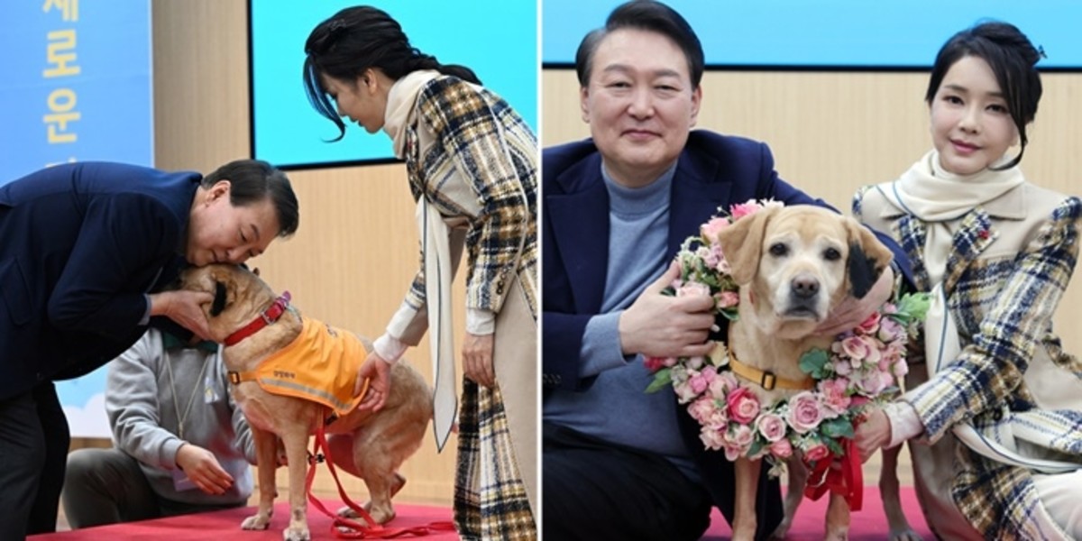 윤석열 대통령 부부, 은퇴 안내견 분양 받아