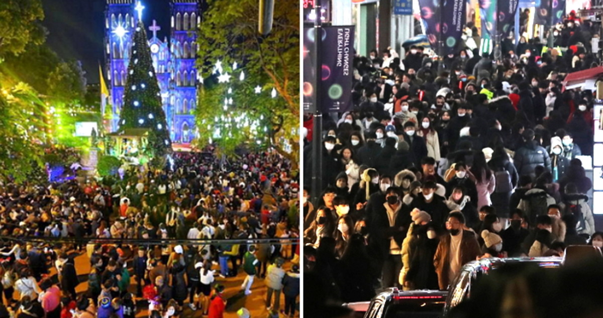 크리스마스이브인 지난 24일 밤부터 하노이의 거리는 사람들로 붐벼 쉽게 이동하기도 어려울 정도였다고 한다.