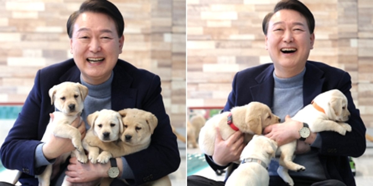 [인사이트] 최재원 기자 = 남다른 반려동물 사랑으로 알려진 윤석열 대통령 내외가 아기 강아지들에게 둘러싸여 함박웃음을 지었다.