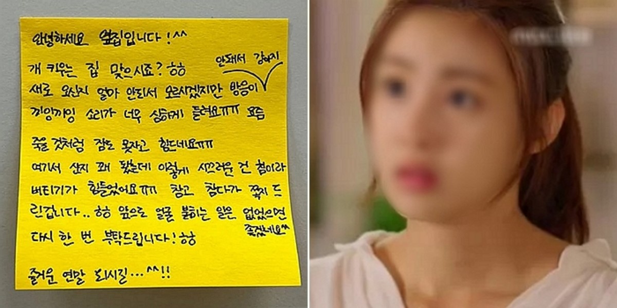 쪽지에는 "안녕하세요 옆집입니다. 개 키우는 집 맞으시죠?"라는 인사와 함께 강아지 소리로 인해 생활이 어렵다는 내용이 적혀 있었다.