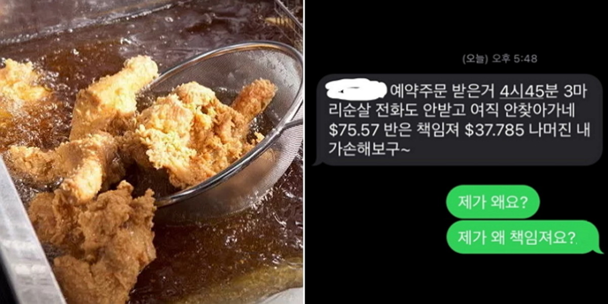 손님이 노쇼를 했다는 이유로 사장이 "치킨값의 절반은 네가 부담해"라는 압박을 당한 것이다.