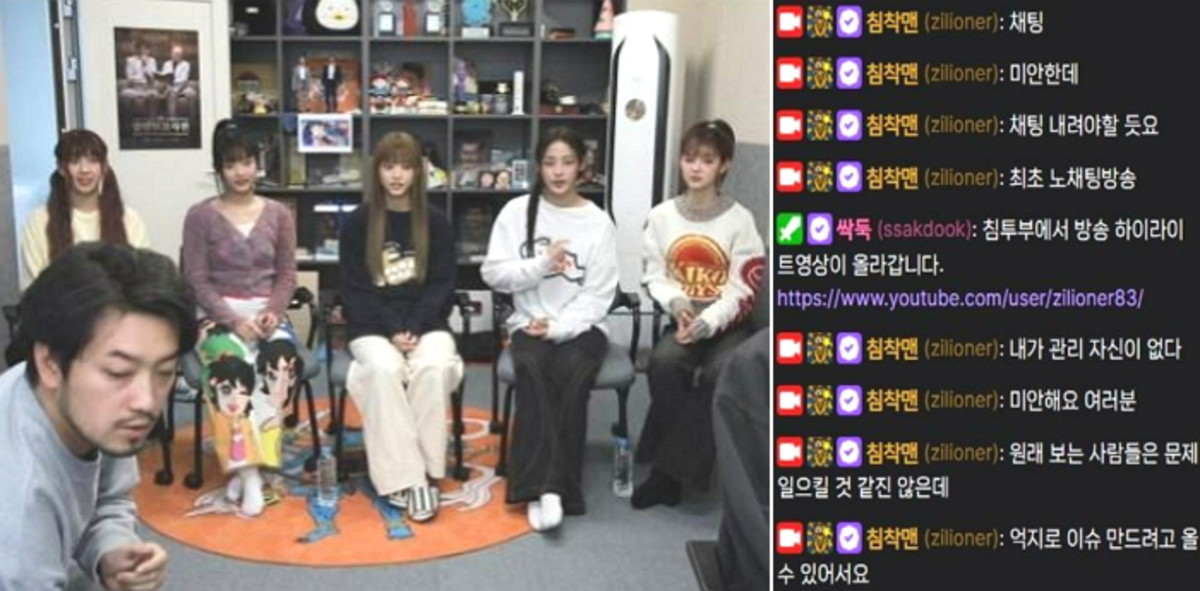 이는 침착맨이 특정한 잘못을 했기 때문이 아니었다. 걸그룹 뉴진스가 방송에 출연했다는 이유 하나 때문이었다.