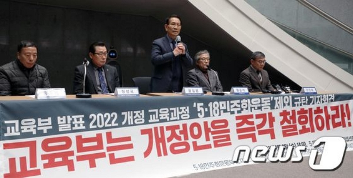 황일봉 5·18민주화운동 부상자 회장도 "윤석열 대통령은 지난해 5·18 기념식 당시 '5·18은 국민 통합의 주춧돌이자 헌법 정신 그 자체'라고 강조한 바 있다. 이번 교육부의 결정은 대통령 기념사와 진행 중인 후속 조치를 거스르는 것"이라고 외쳤다.