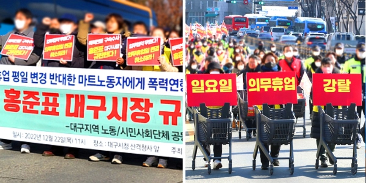 [인사이트] 최민서 기자 = 홍준표 대구시장이 대형마트 의무휴업일을 '평일'로 변경하는 방안을 추진하자, 마트 노동자들이 법적 대응에 나설 계획을 밝혔다.