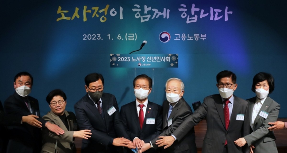 이날 노사정 신년인사회는 3년 만에 재개됐으며 이정식 고용노동부 장관과 손경식 한국경영자총협회 회장, 김문수 경제사회노동위원회 위원장 등 노사정 대표와 유관단체 및 기관장 등 100여명이 함께 자리했다.
