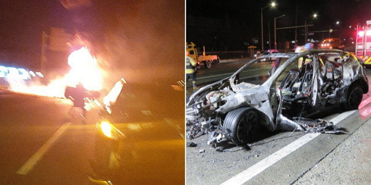 사고는 테슬라 차량이 중앙분리대 가드레일을 들이받은 데 이어 마주 오는 차량과 충돌한 뒤 시작됐다.