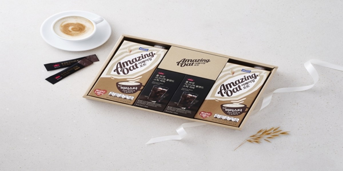 어메이징 오트 선물세트는 190ml 오리지널과 언스위트 각각 16개씩 총 32개입으로 구성된 혼합 구성 선물세트 및 어메이징 오트 바리스타와 폴 바셋 커피스틱, 어메이징퐁, 톡톡오트밀 등이 함께 구성된 어메이징 오트 카페 기획세트가 준비되어 있다.