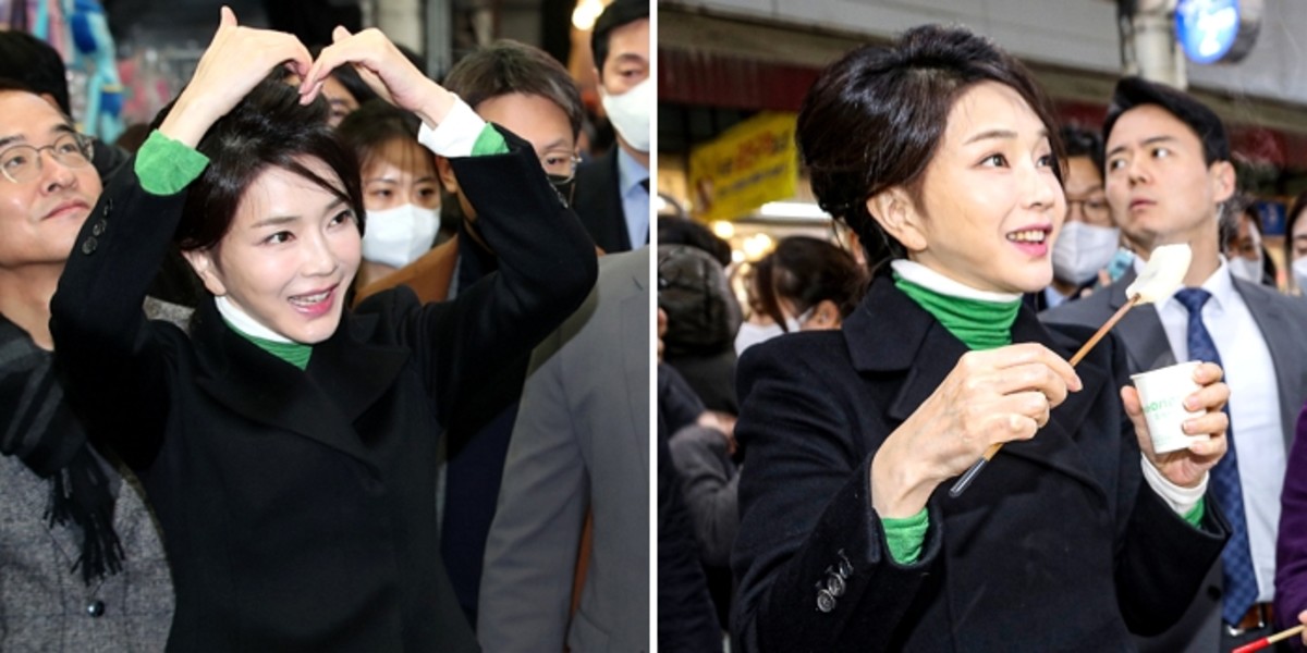 김 여사는 시장을 돌면서 필요한 식자재를 구매하고 어묵을 먹으며 상인들과 시간을 보냈다. 시장을 돌던 김 여사는 "예뻐요"라는 한 상인의 외침에 하트를 만들며 화답을 하기도 했다.