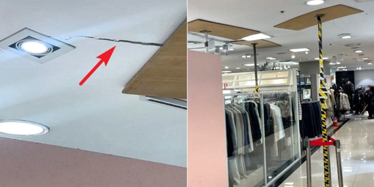 게시물에는 "2층 천장에 금이 가기 시작했는데 계속 영업을 하고 있다", "1층에서는 갑자기 유리가 떨어졌다" 등의 글과 함께 백화점의 상황을 알 수 있는 사진이 포함됐다.
