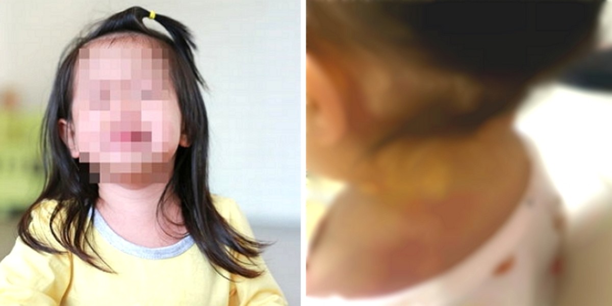 공개된 사진에는 두 돌 된 여자아이의 어꺠에 피멍이 들어 있었다.