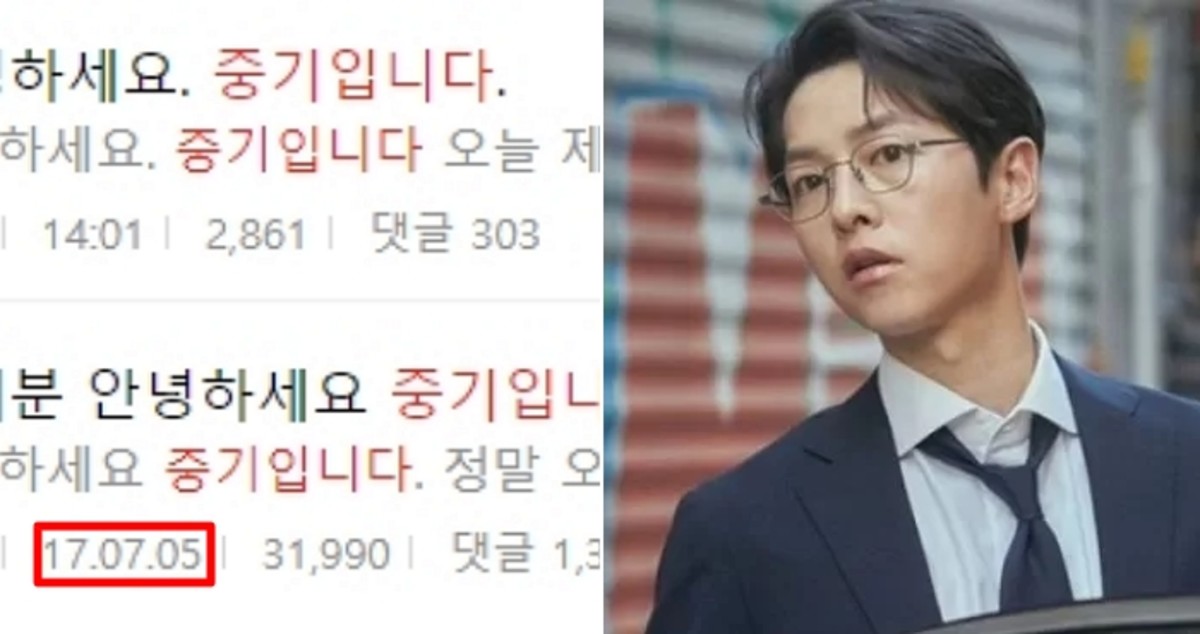 이와 함께 송중기가 지난 2017년 7월 5일 같은 팬카페에 남긴 글이 재조명됐다.
