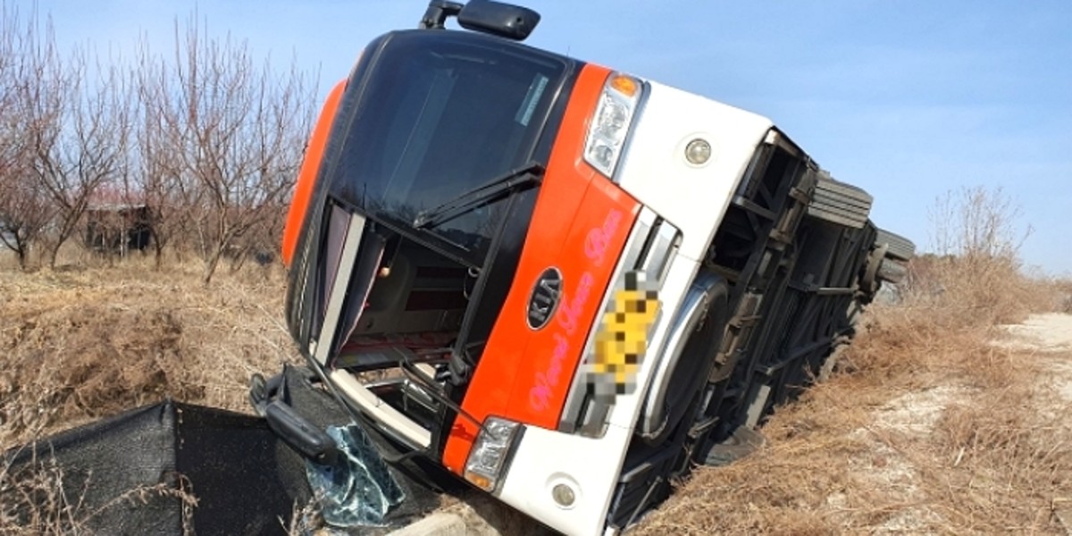3일 소방당국 등에 따르면 이날 오전 10시 30분께 경기 고양시 덕양구 한 도로에서 관광버스가 논두렁 쪽으로 넘어졌다.