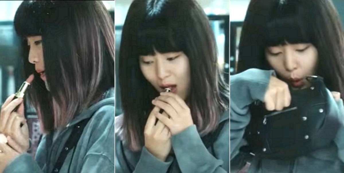 영상 속 여주인공 영이(이연 분)는 뷰티샵에서 주변 눈치를 보다가 앞니로 립스틱을 뚝 끊어서 가방에 톡 하고 내뱉는다.