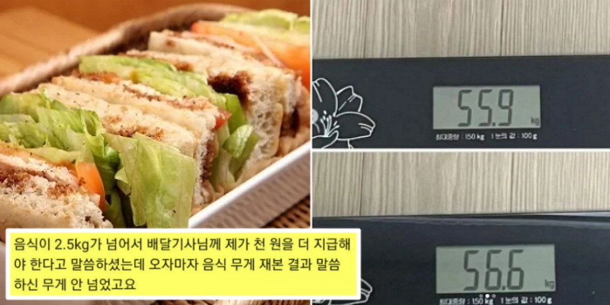 이에 A씨는 항의성 리뷰를 남기기로 마음먹고 "음식이 2.5kg이 넘어서 배달기사님께 제가 1천 원을 더 지급해야 한다고 말씀하셨는데, 오자마자 음식 무게 재본 결과 말씀하신 무게 안 넘었다. (그리고) 그 무게가 넘는다고 해서 왜 소비자인 제가 그 돈을 기사님께 지불해야 하는지도 이해가 안 가서 여쭤본다"라고 글을 남겼다.