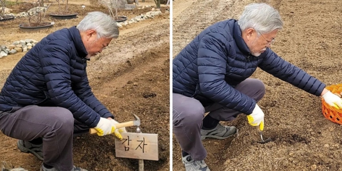 [인사이트] 최민서 기자 = 문재인 전 대통령이 텃밭에 감자를 심는 모습 등이 담긴 일상을 공개했다.