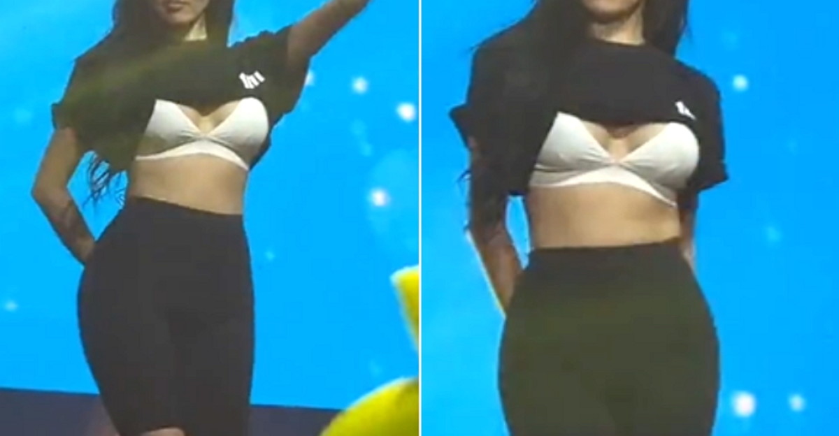 여기에 흰색 상의 브라렛이 보이는, 파격적인 검은색 크롭티를 입어 시선을 집중시켰다.