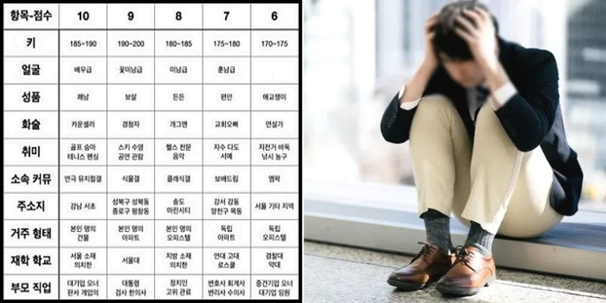 [인사이트] 정봉준 기자 = 외모·성품·재력 등 10가지 기준을 갖고 남자를 평가하는 남자 등급표가 화제가 되고 있다.