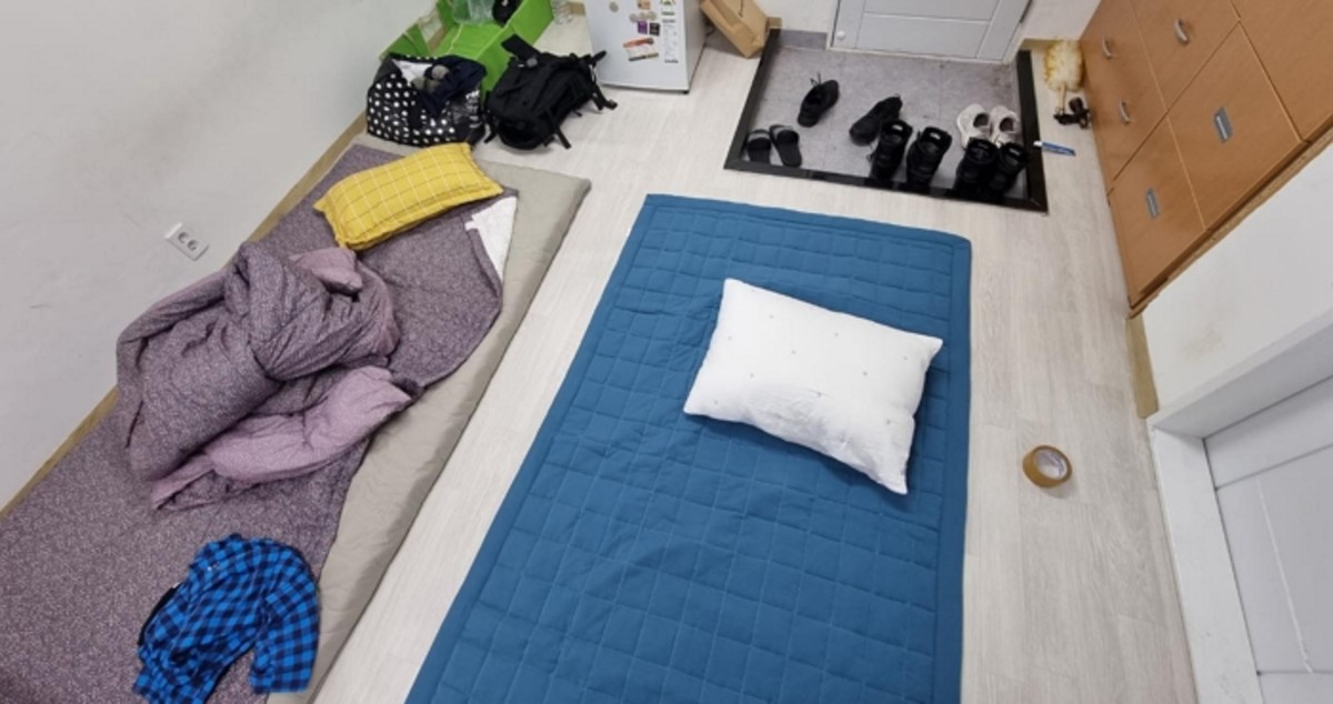 사진 속 방은 1인용 매트 2개를 깔면 바닥이 가득 찰 정도로 좁다.