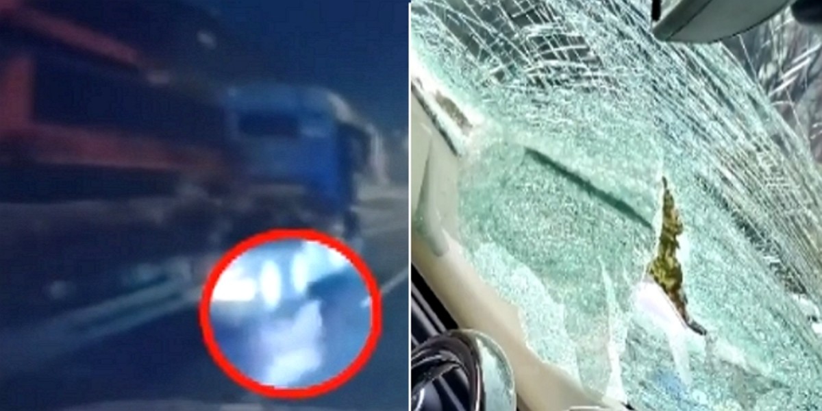 완전히 파손된 차 앞 유리는 얼마나 위험한 상황이었는지 한눈에 보여준다.