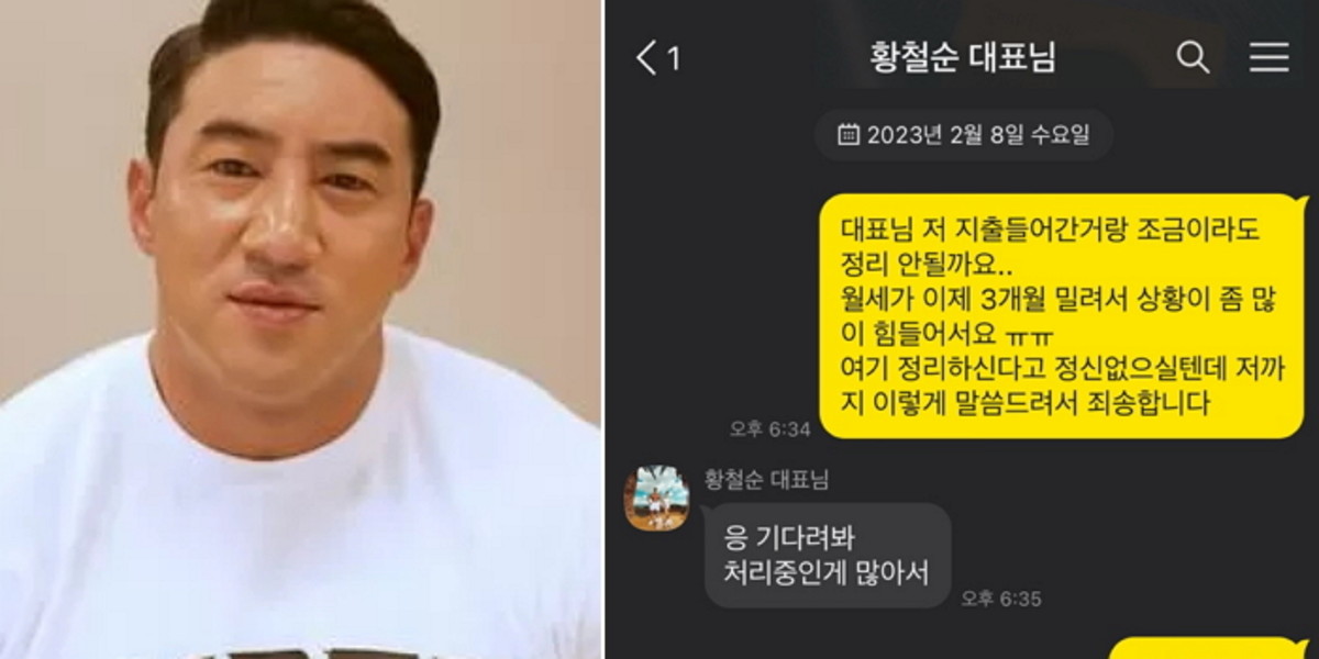 이어 "재료, 알바, 식대 업무에 들어가는 돈을 제 돈과 제 여자친구 카드까지 써가며 막다가 신용불량자가 됐다"라면서 "몇 번이고 대표님(황철순)께 힘들다고 정리해달라고 말했지만 이제야 주변을 살핀다"라고 덧붙였다.