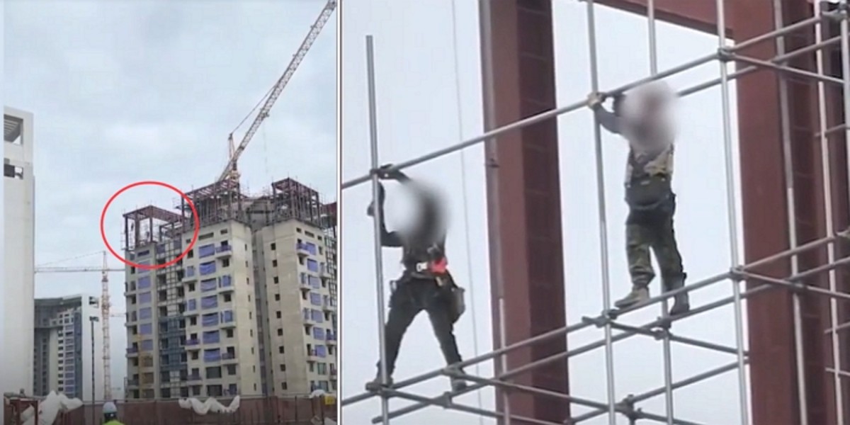 보도에 따르면, 인부들이 짓고 있는 아파트는 48층이다. 근로자들은 오직 '작업 발판'에만 의지한 채 작업하고 있었다.