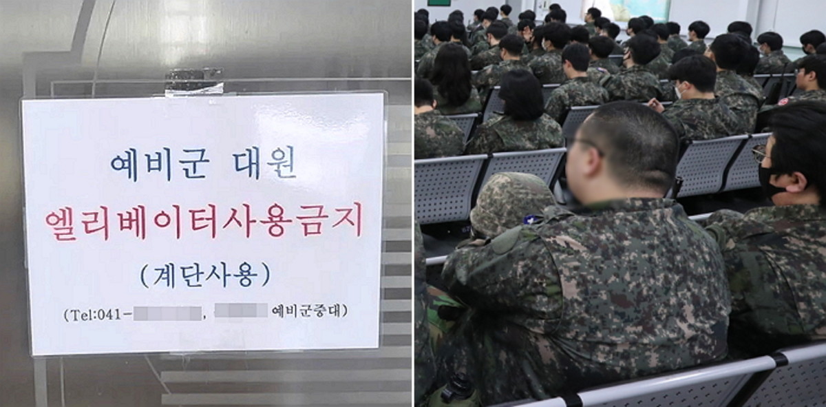 한 행정복지센터에 "예비군은 엘리베이터 이용이 제한됩니다. 계단을 이용해 주세요"라는 문구가 엘리베이터에 붙여졌는데, 이 역시 센터가 아닌 예비군 부대가 붙인 것이었다.