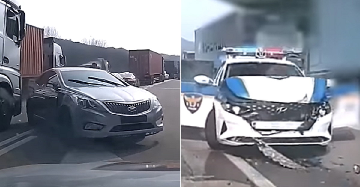 더 이상 도망갈 곳이 없어진 도주 차량. 그러자 급기야 역주행으로 경찰차를 정면으로 충돌하기에 이르렀다.