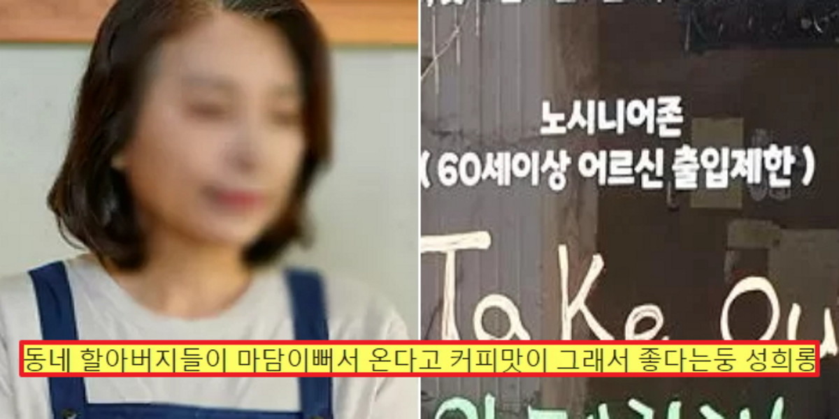 그는 "동네 할아버지들이 여사장님을 두고 '여기 마담 이뻐서 온다', '커피맛이 그래서 좋다' 등의 성희롱 말씀들을 많이 했다"라며 "여사장님 혼자 감당하기 어려워 노시니어존이라고 써 붙이신 것"이라고 말했다.