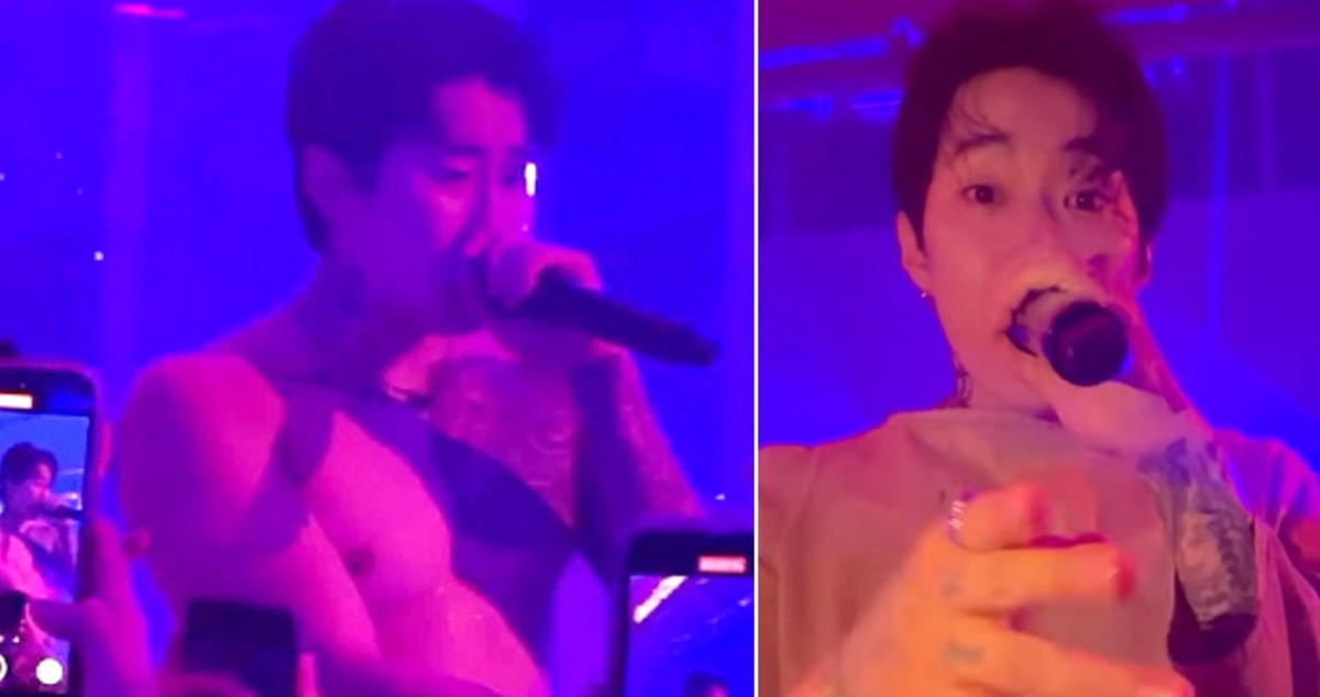 박재범은 '몸매'의 전주가 흘러나오자, 상의를 벗고 술을 공중으로 뿜어 현장 분위기를 달아오르게 했다.