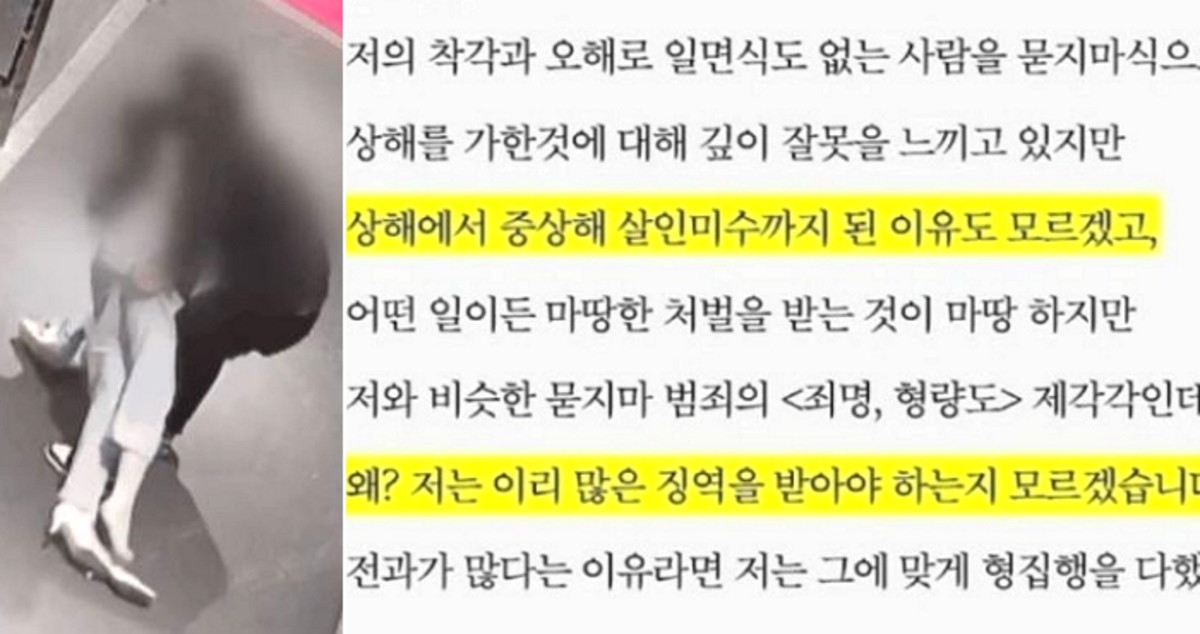 [인사이트] 김다솜 기자 = 이른바 '부산 돌려차기 사건'의 가해자 A씨가 항소심에서 징역 20년을 선고받은 가운데, 그가 재판부에 제출한 반성문이 공개됐다.