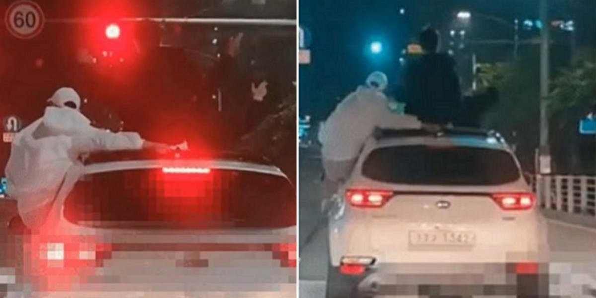 한편 달리는 차량에서 선루프 위로 몸을 내미는 행동은 도로교통법 위반이다.